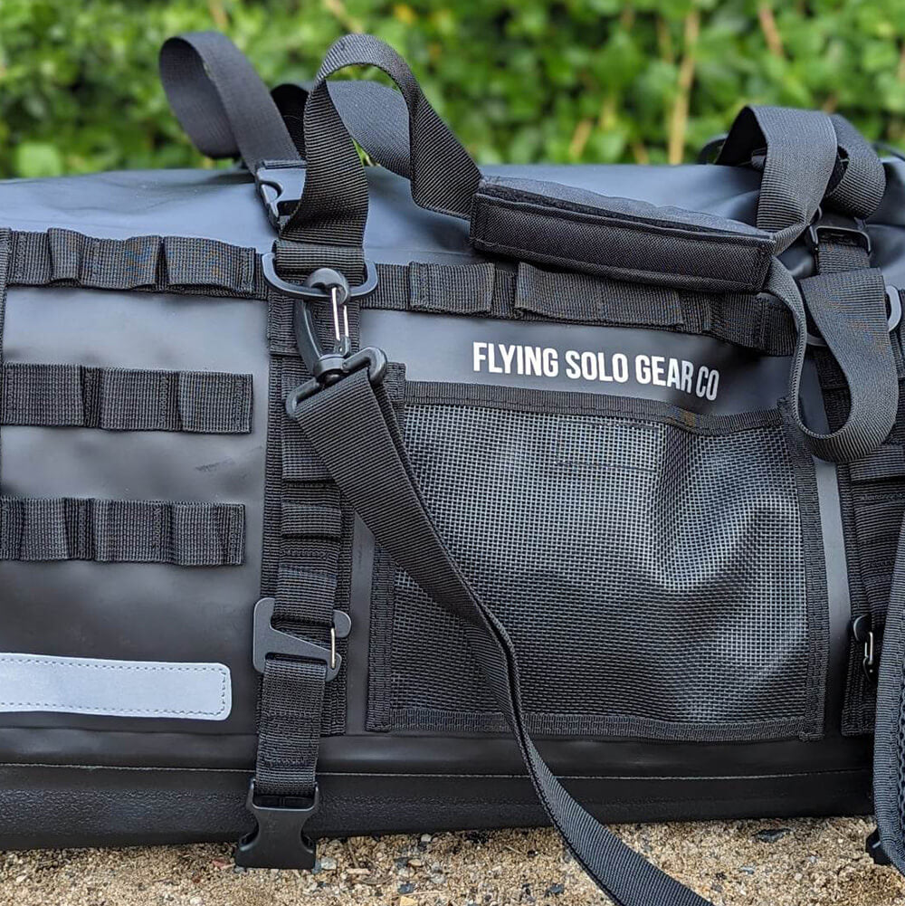 Latch extra tools, trackers, sat phone, or EPIRB to the external webbing.